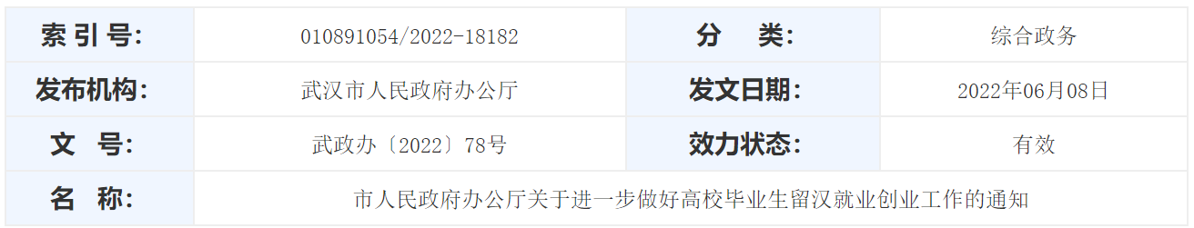 为贯彻落实习近平总书记关于做好高校毕业生就业工作的重要指示精神,切实做好当前及今后一段时期高校毕业生留汉就业创业工作,根据《国务院办公厅关于进一步做好高校毕业生等青年就业创业工作的通知》(国办发〔2022〕13号)精神和省“才聚荆楚”工程要求,结合我市实际,经市人民政府同意,现将有关事项通知如下: