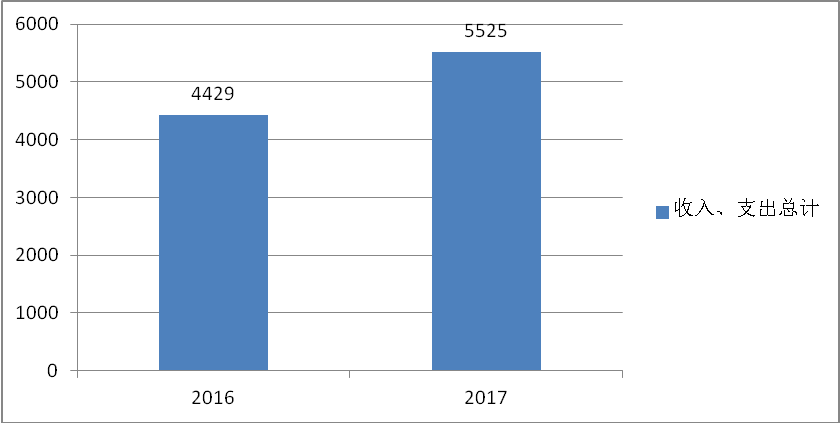2017年度收、支总计5,525万元。与2016年相比,收、支总计各增加1,096万元,增长24.75%,主要原因是日常开支增加、项目经费增加。