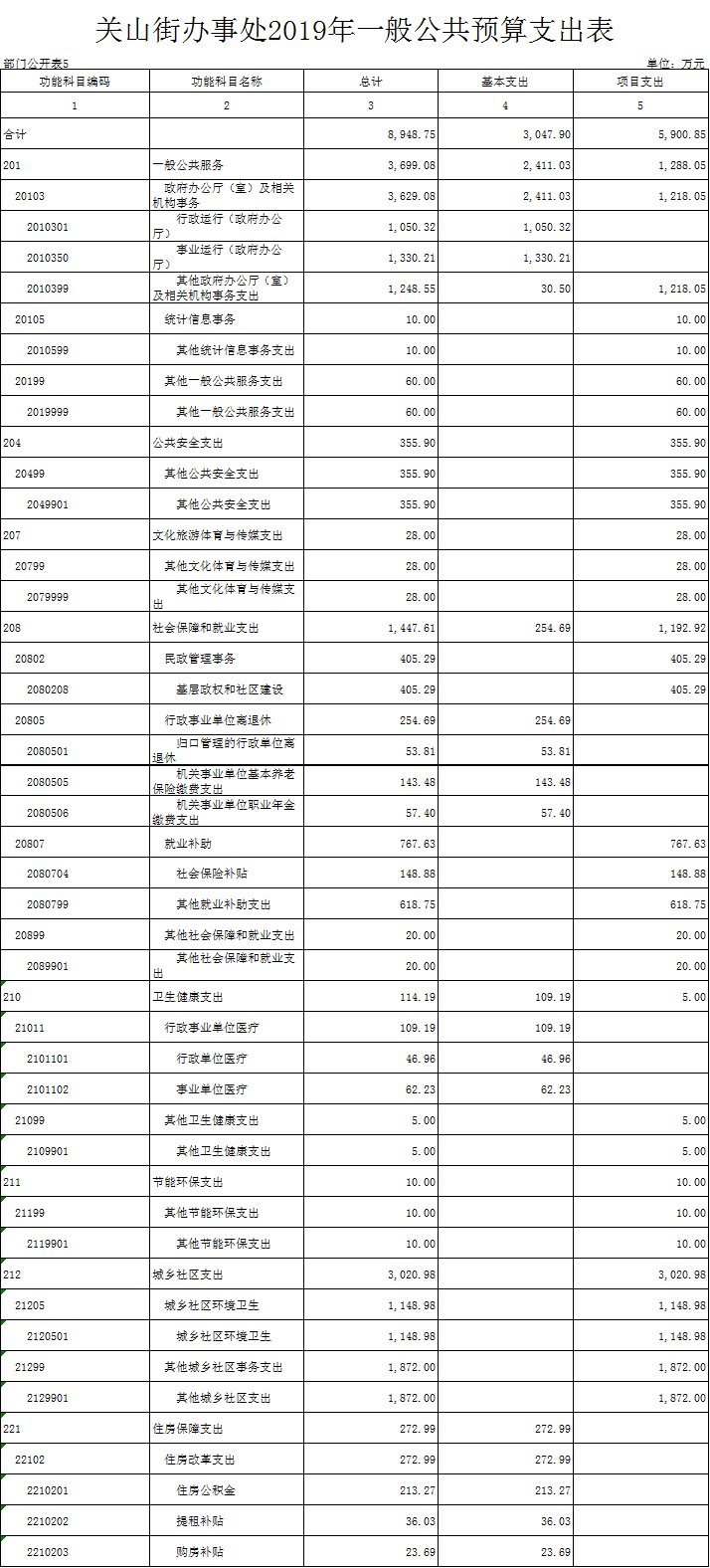 五、一般公共预算支出表