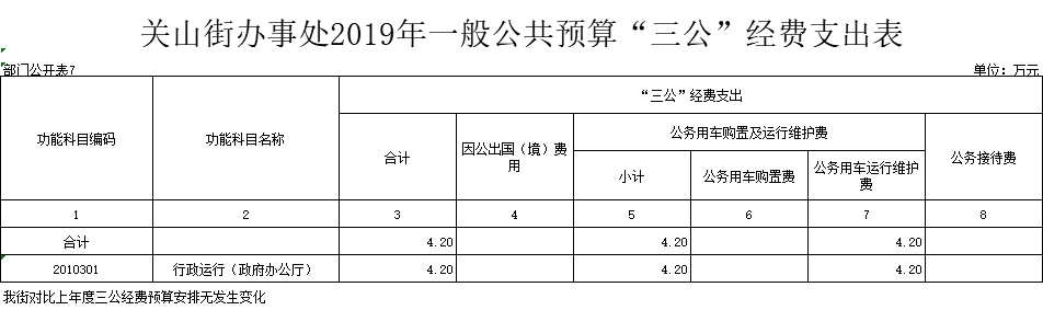一般公共预算财政拨款安排“三公”经费预算4.2万元,与2018年预算对比无变化。其中: