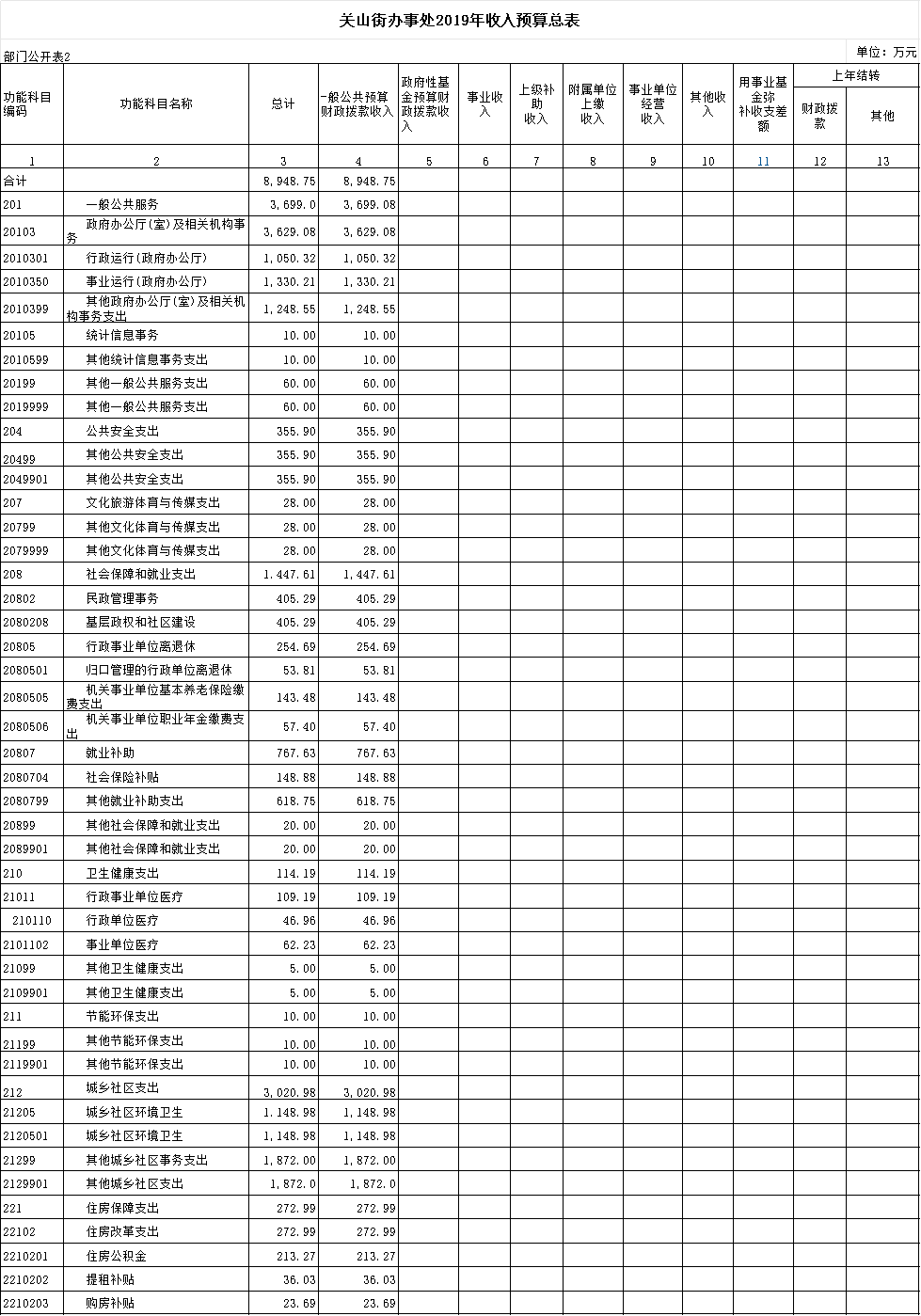 2019年部门预算表