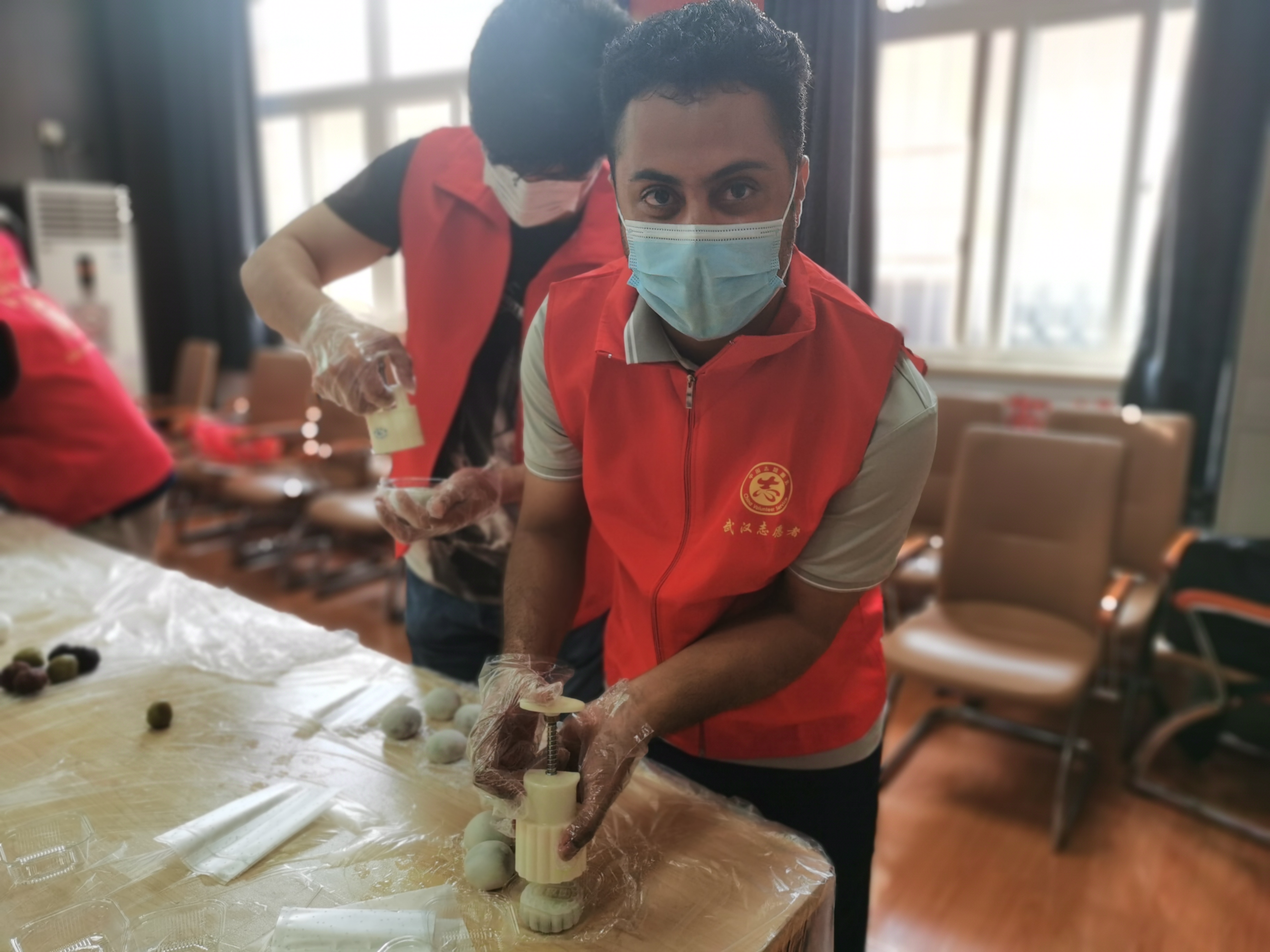 TOHA SOURAV来自孟加拉,来中国2年了,是中国地质大学国际教育学院的在读本科生。精通中文的他平时很喜欢把中国的食材用孟加拉国的方式融合在一起做出一道道美食,这次做月饼活动,他做得最快。“去年中秋节,我也做过月饼的。”TOHA笑着说。