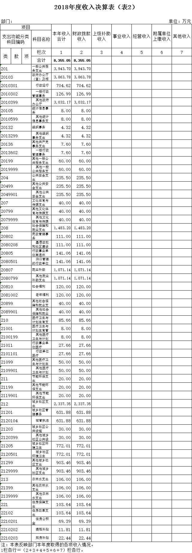 2018年度本年收入合计 8355.05 万元。其中:财政拨款收入 8355.05 万元,占本年收入 100 %;上级补助收入 0 万元,占本年收入0%;事业收入0万元,占本年收入0 %;经营收入 0 万元,占本年收入 0 %;附属单位上缴收入 0 万元,占本年收入 0 %;其他收入 0 万元,占本年收入 0 %。