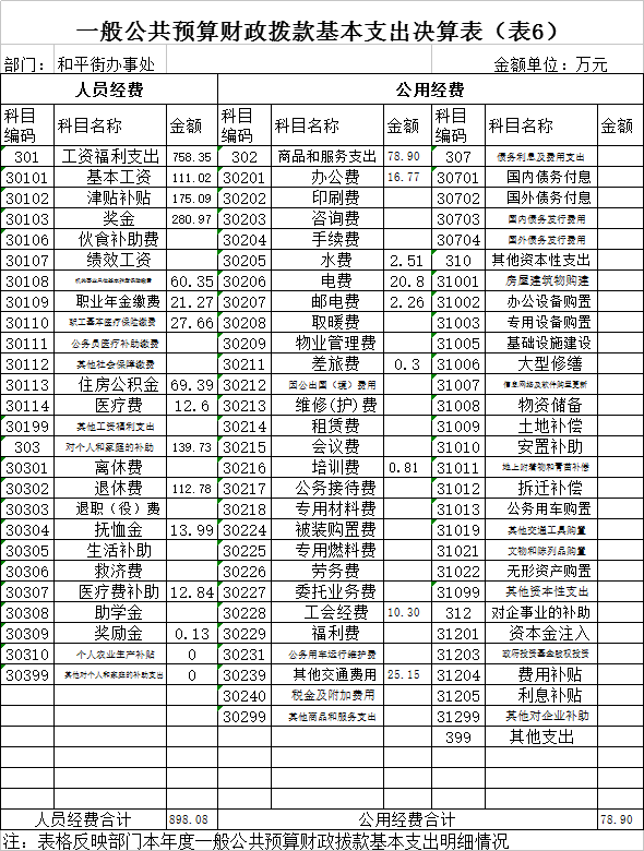 六、一般公共预算财政拨款基本支出决算表(表6)