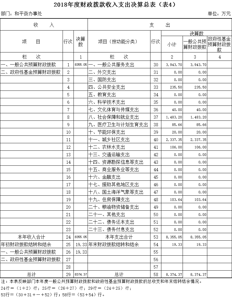 第二部分 黄色网址 和平街办事处2018年度部门决算表