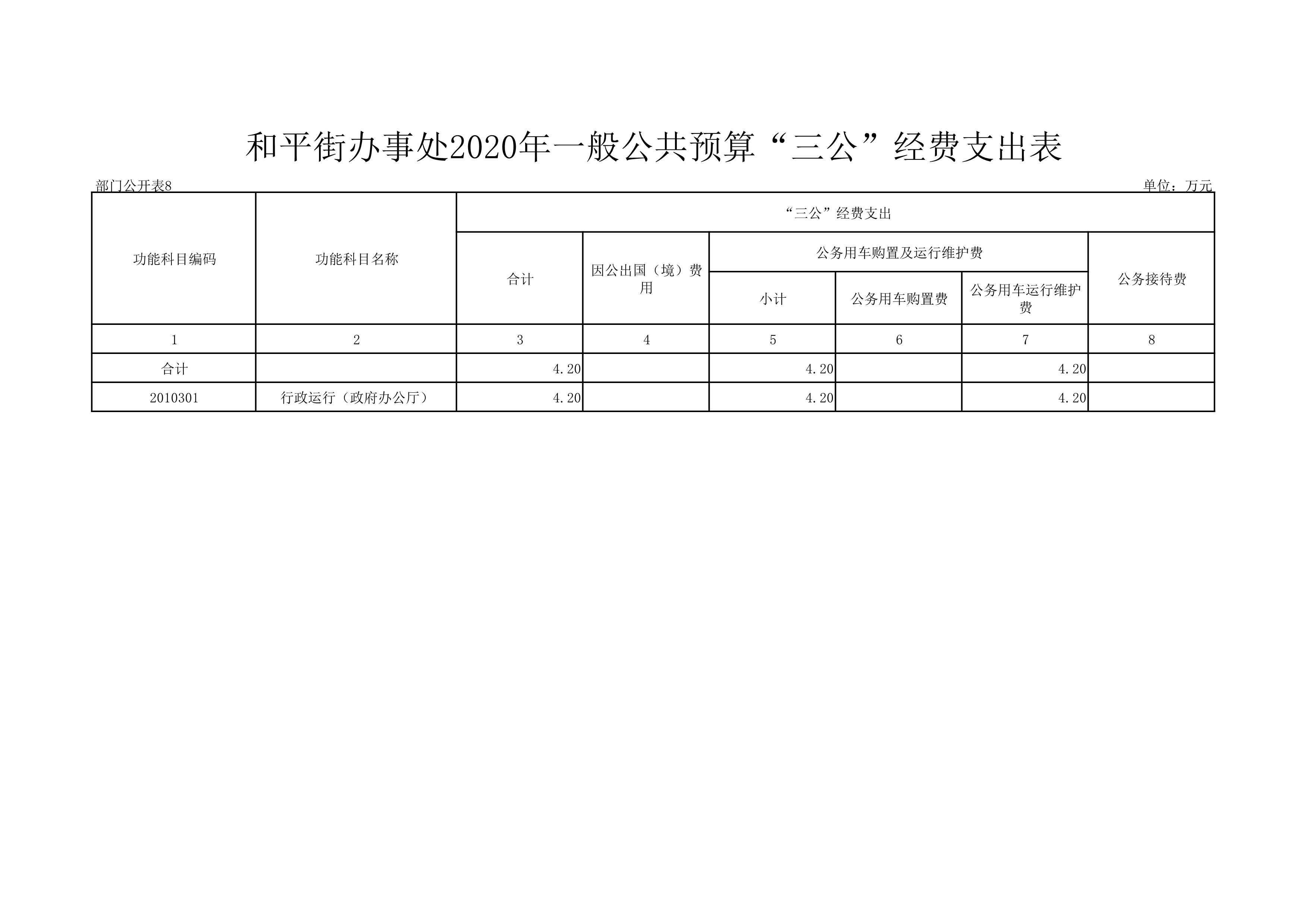 名 称:和平街办事处2020年一般公共预算“三公”经费支出表