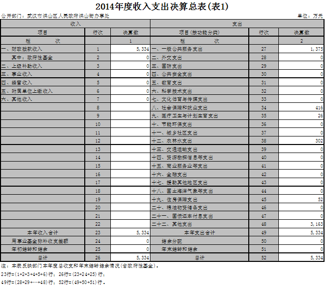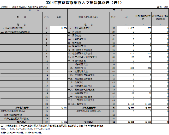 2014年度黄色网址 洪山街办事处部门决算
