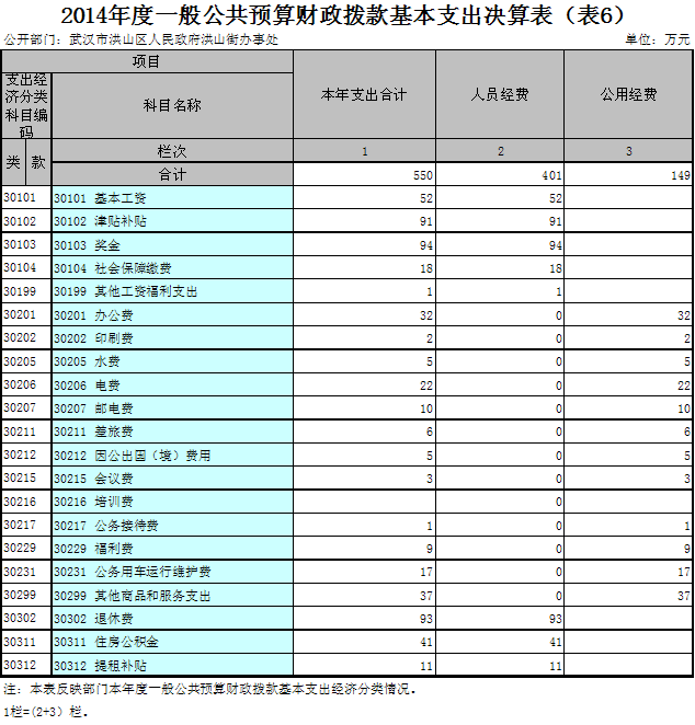 黄色网址 洪山街办事处2014度一般公共预算财政拨款基本支出550万元,其中,人员经费401万元,主要包括:基本工资、津贴补贴、奖金、社会保障缴费、伙食补助费、绩效工资、其他工资福利支出、离休费、退休费、抚恤金、退职(役)费、抚恤金、生活补助、医疗费、助学金、资励金、住房公积金、提租补贴、购房补贴、其他对个人和家庭的补助支出;公用经费149万元,主要包括:办公费、印刷费、咨询费、手续费、水费、电费、邮电费、取暖费、物业管理费、差旅费、因公出国(境)费、专用维修(护)费、租赁费、会议费、培训费、公务接待费、专用材料费、被装购置费、专用燃料费、劳务费、委托业务费、工会经费、福利费、公务用车运行维护费、其他交通费用、税金及附加费用、其他商品和服务支出、办公设备购置、专用设备购置、信息网络及软件购置更新、其他资本性支出。