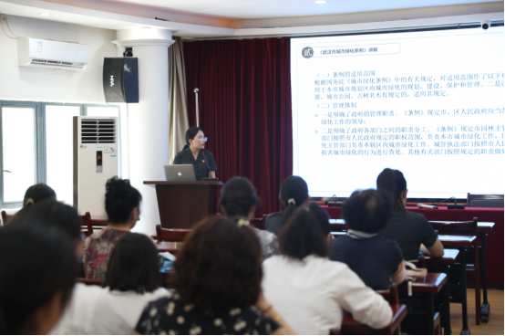 “各位居民朋友,大家知道损害城市绿化的行为有哪些吗?”区法院的普法课堂拉开本次活动的序幕。来自该院行政庭的法官助理,结合《武汉市城市绿化条例》的适用范围、管理体制,社会公众知晓、参与城市绿化权利的实现及法律责任问题等内容,通过以案析法的方式,生动形象地向现场居民普及重点条目,倡导居民朋友及时制止身边毁绿、占绿的违法行为,提升居民爱绿护绿的环保意识。