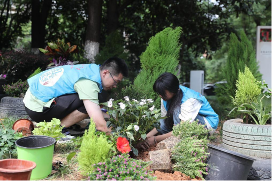 上完理论课,区园林局绿化修剪负责人教授实践课。参与活动的政协委员、居民代表和园林养护工人一道,借助专业工具对小区内绿篱进行合理修剪和整形,并就社区绿化长效管理积极建言献策。受邀参加活动的华中农业大学张瑜服务队的志愿者们也不甘示弱,他们发挥专业优势,指导居民利用废旧轮胎和鲜花点缀,将绿化带一块十余平方米的“边角料”,装扮成花团锦簇的鲜艳场景。