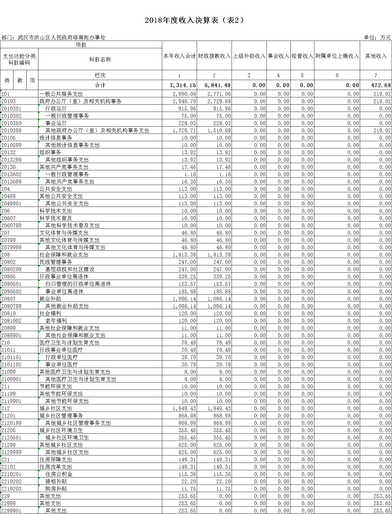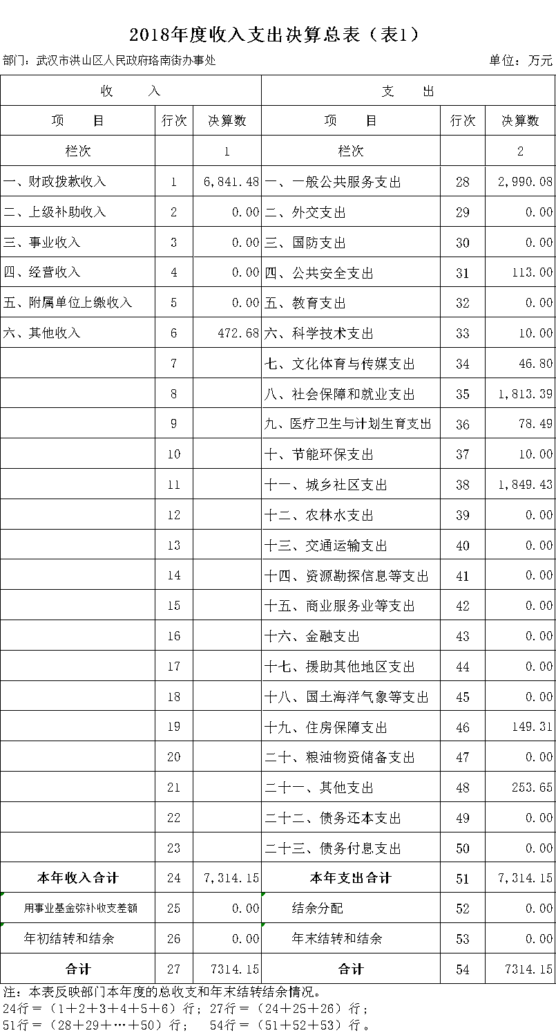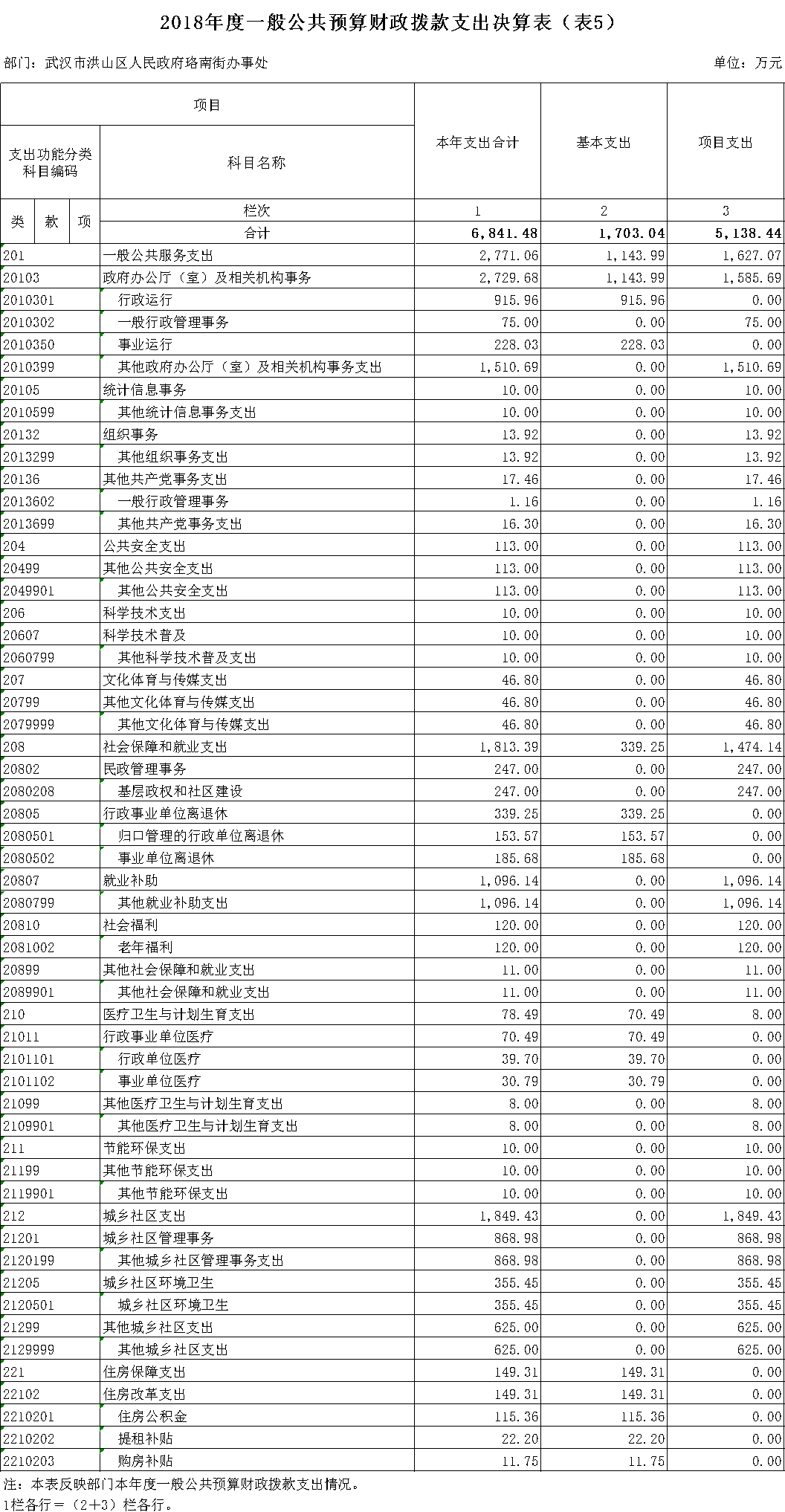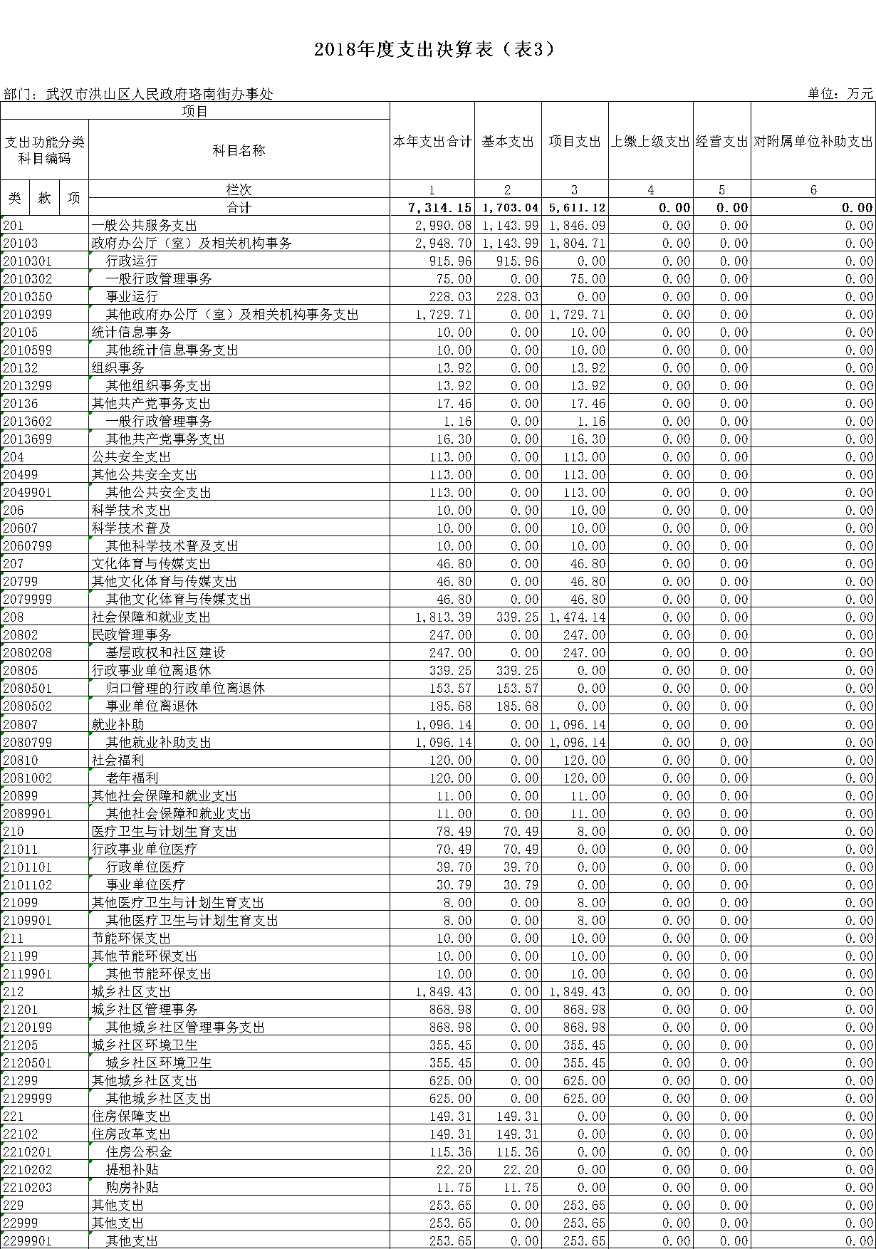 名 称:2018年度黄色网址 人民政府珞南街办事处部门决算 |