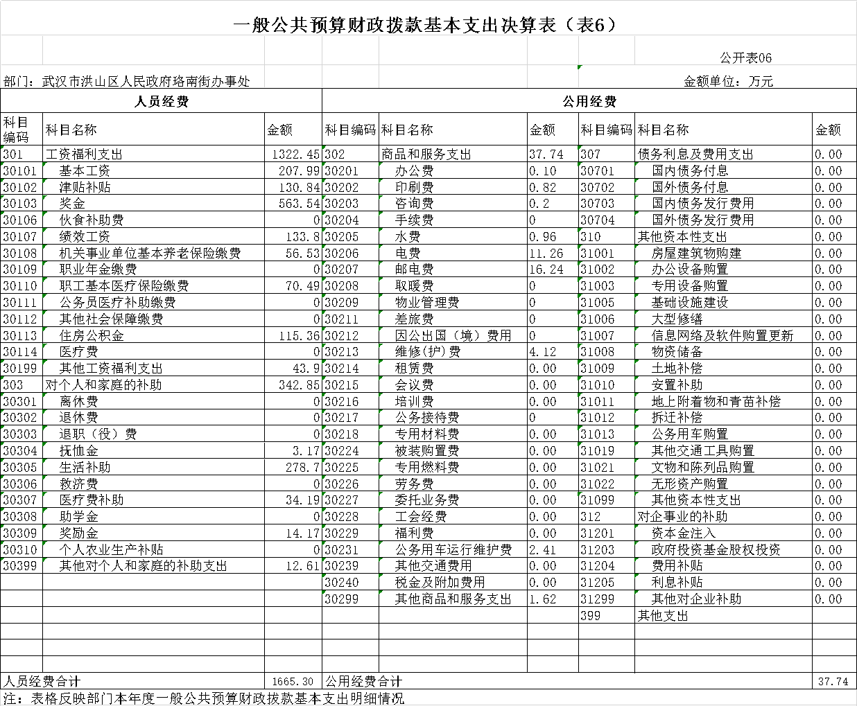六、一般公共预算财政拨款基本支出决算表(表6)