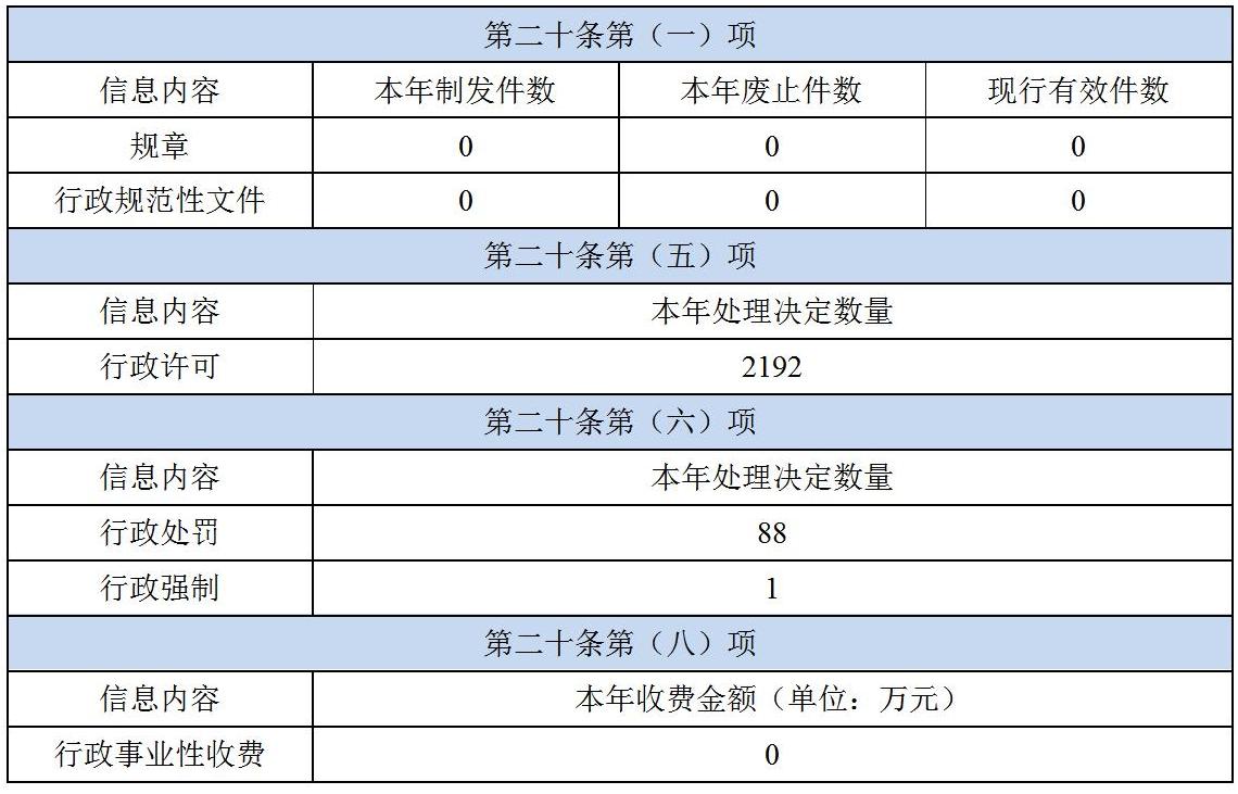 梨园街道本年未制发规章、行政规范性文件;处理行政许可决定数量2192件;处理行政处罚数量88件,处理行政强制数量1件;行政事业性收费共0元。