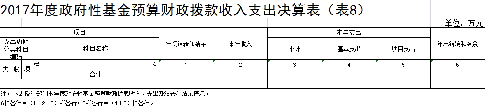八、政府性基金预算财政拨款收入支出决算表(表8)