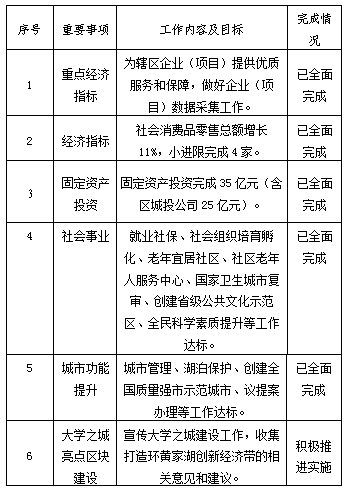 就业社保、社会组织培育孵化、老年宜居社区、社区老年人服务中心、国家卫生城市复审、创建省级公共文化示范区、全民科学素质提升等工作达标。