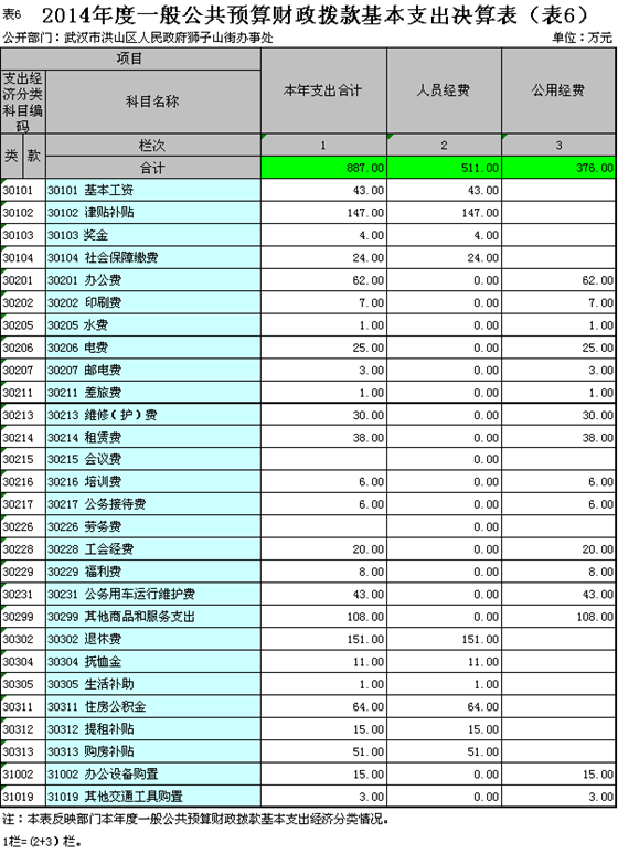 名       称:2014年度黄色网址 狮子山街办事处部门决算