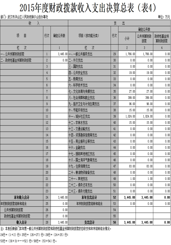 黄色网址 狮子山街办事处2015年度本年收入合计 3445万元。其中:财政拨款收入(含政府性基金拨款) 3445万元,占本年收入 100 %。
