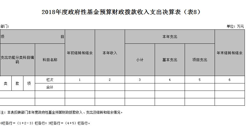 八、政府性基金预算财政拨款收入支出决算表(表8)