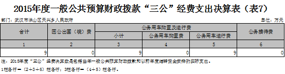 2015年度“三公”经费财政拨款年度预算为  17  万元,支出决算为9万元,完成预算的  52.94  %。其中: