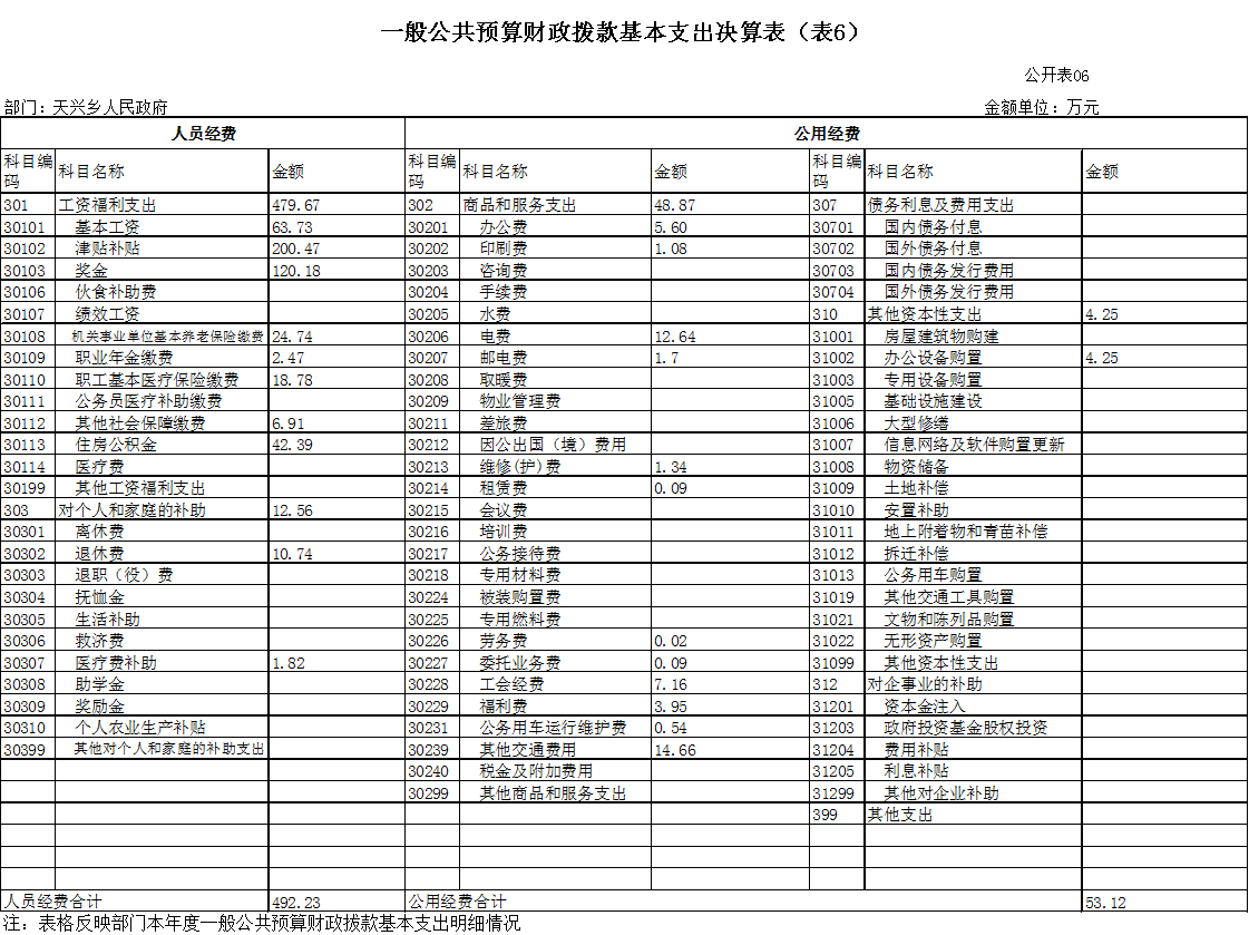 名 称:2018年度黄色网址 天兴乡人民政府决算 |