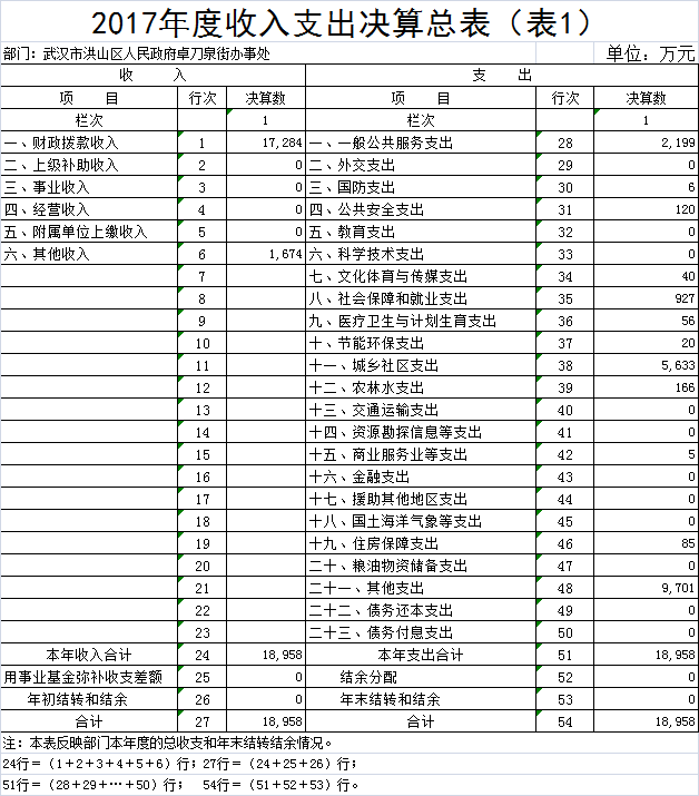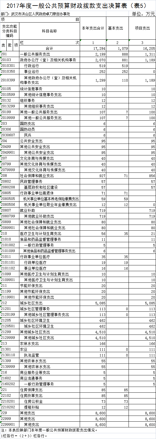 名 称:2017年度黄色网址 卓刀泉街办事处部门决算 |