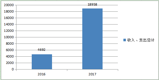 2017年度收、支总计18,958万元。与2016年相比,收、支总计各增加14,266万元,增长304.05%,主要原因是人员支出调整,养老保险与职业年金缴纳,大城管资金和紫菘工业园房屋腾退经费增加。