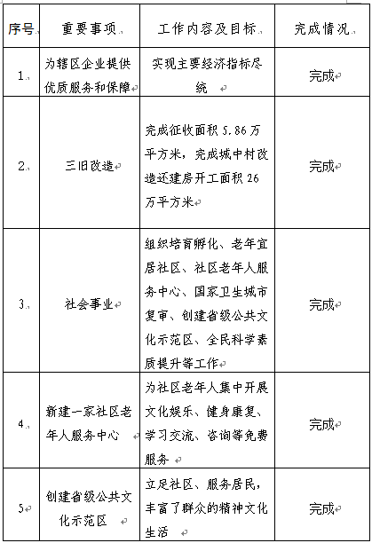 就业社保、社会组织培育孵化、老年宜居社区、社区老年人服务中心、国家卫生城市复审、创建省级公共文化示范区、全民科学素质提升等工作。