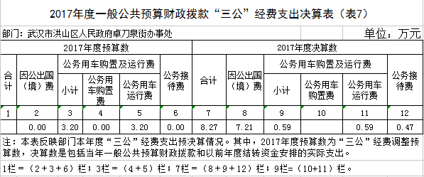2017年度“三公”经费财政拨款年度预算数为3.2万元,支出决算为8.27万元,为预算的258.44%,其中: