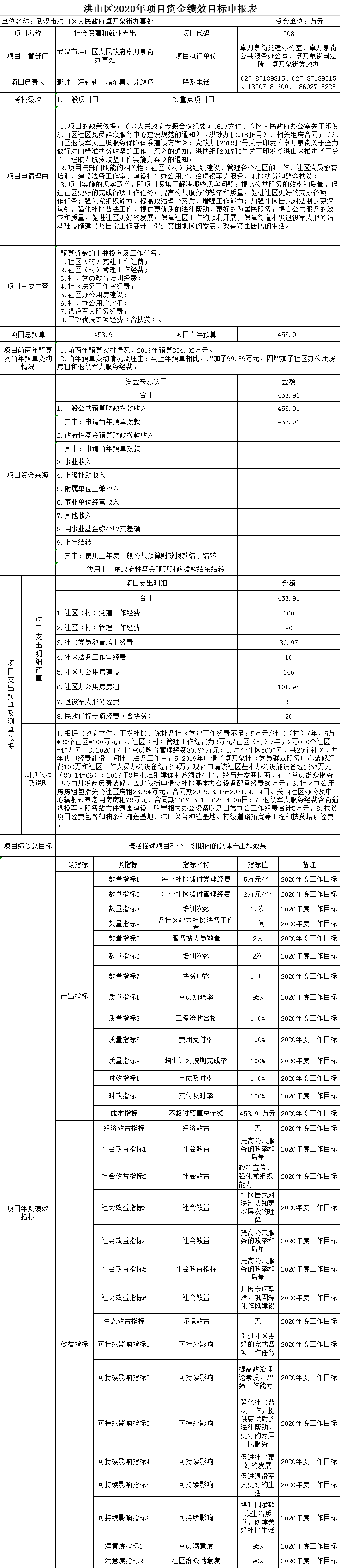 名 称:卓刀泉街2020年社会保障和就业支出绩效目标申报表