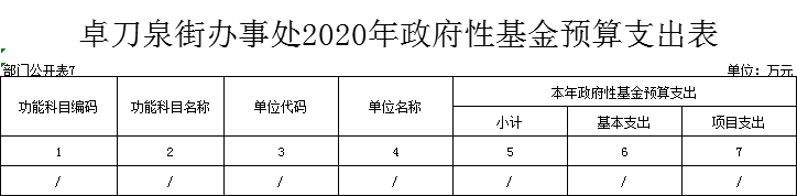 名 称:卓刀泉街2020年政府性基金预算支出表