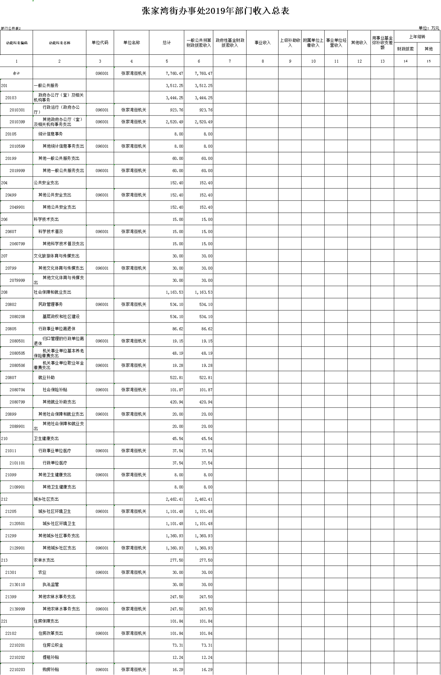 2019年部门预算表(表格独立公开)