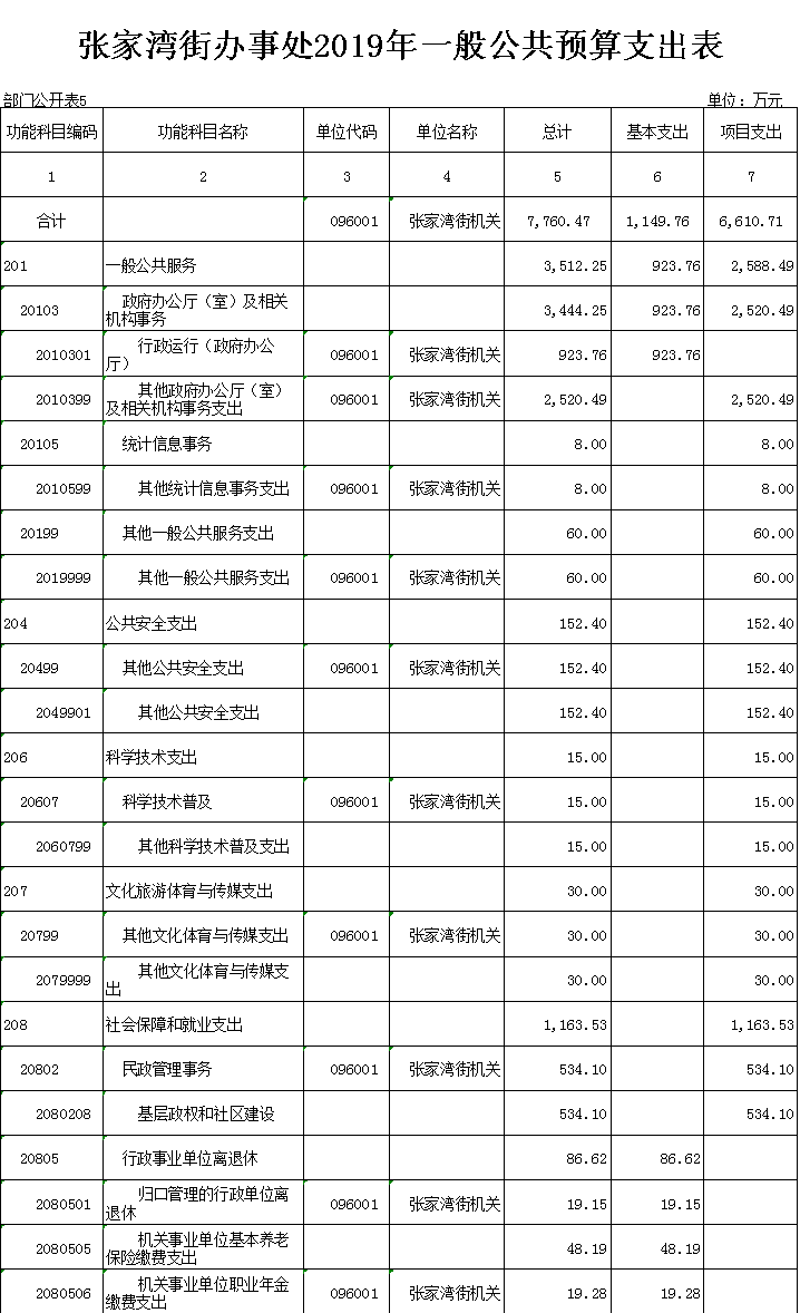 名 称:张家湾街办事处2019年部门预算编制说明 |
