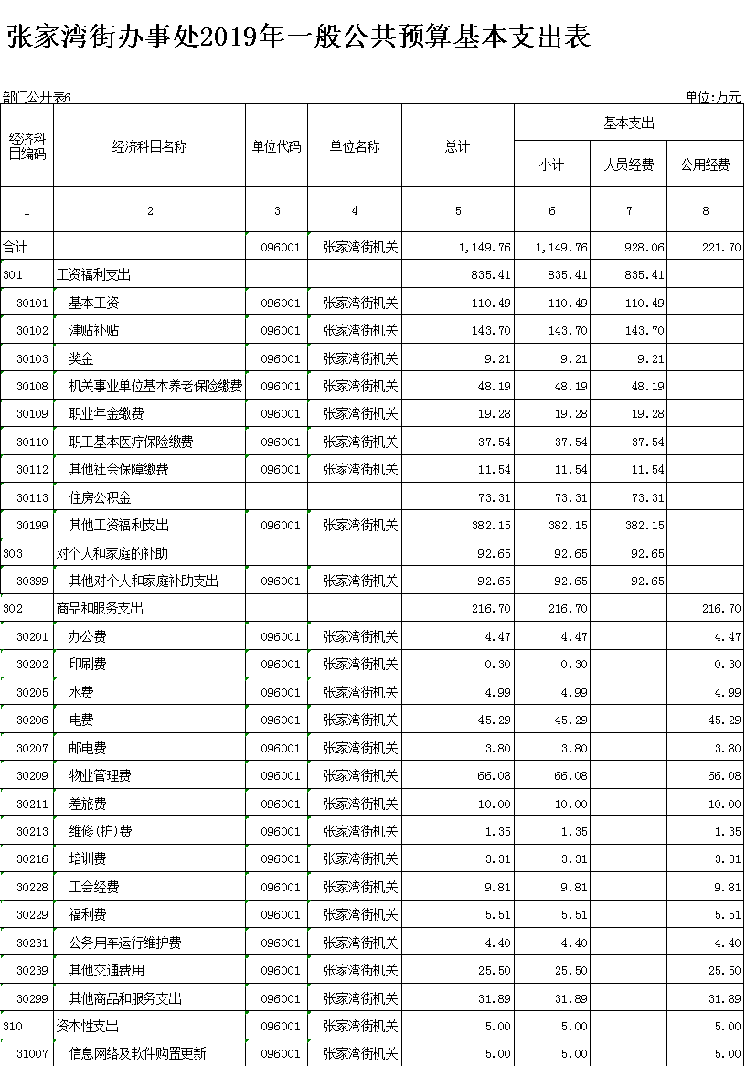 六、一般公共预算基本支出表
