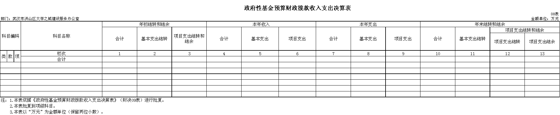 八、政府性基金预算财政拨款收入支出决算表(表8)
