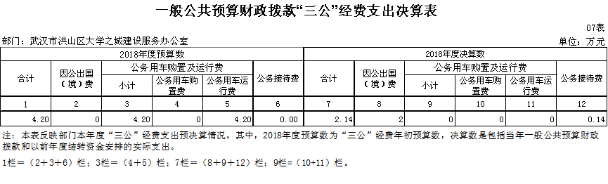 (十四)“三公”经费:指使用一般公共预算财政拨款安排的因公出国(境)费、公务用车购置及运行维护费和公务接待费。其中,因公出国(境)费用反映单位公务出国(境)的国际旅费、国外城市间交通费、住宿费、伙食费、培训费、公杂费等支出;公务用车购置及运行维护费反映单位公务用车车辆购置支出(含车辆购置税)及燃料费、维修费、过桥过路费、保险费、安全奖励费用等支出;公务接待费反映单位按规定开支的各类公务接待(含外宾接待)费用。