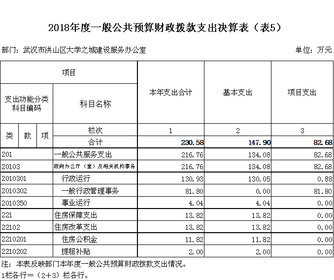 2018年度财政拨款支出230.58万元,主要用于以下方面:一般公共服务(类)支出216.76万元,占94%;住房保障支出 13.82 万元,占6%。