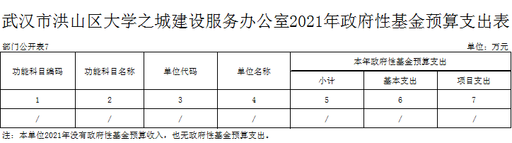名 称:黄色网址 大学之城建设服务办公室2021年政府性基金预算支出表