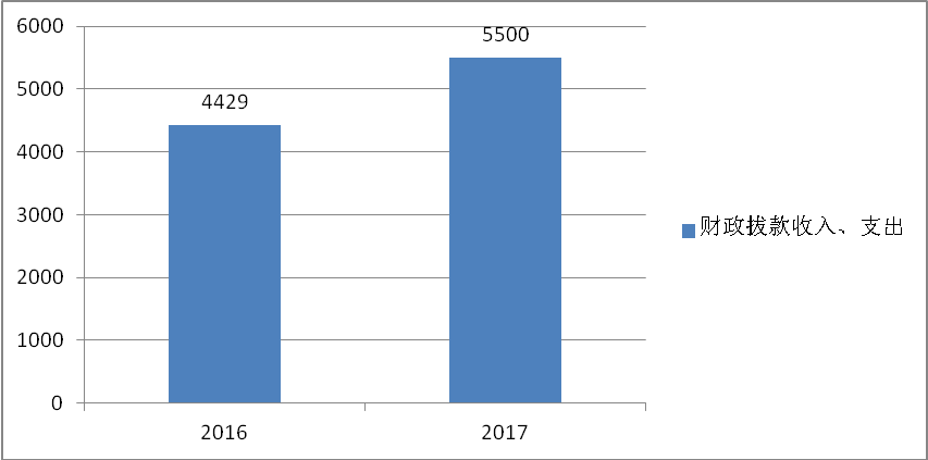 2017年度财政拨款收、支总计5,500万元。与2016年相比,财政拨款收、支总计各增加1,071万元,增长24.18%。主要原因是日常开支增加、项目经费增加。