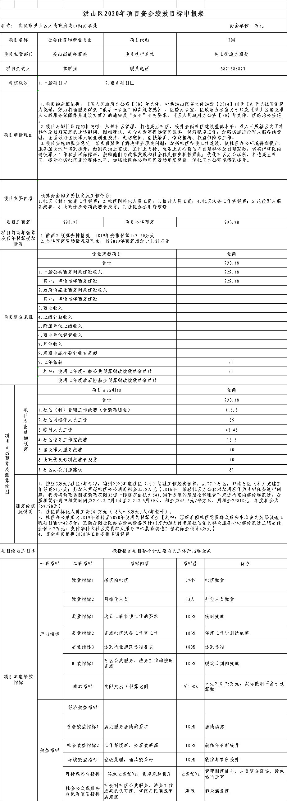 关山街2020年部门整体支出绩效目标表和项目资金绩效目标表