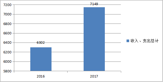 2017年度收、支总计7,149万元。与2016年相比,收、支总计各增加847万元,增长13.44%。主要原因是增加了公共安全、城市管理、社区建设的投入。