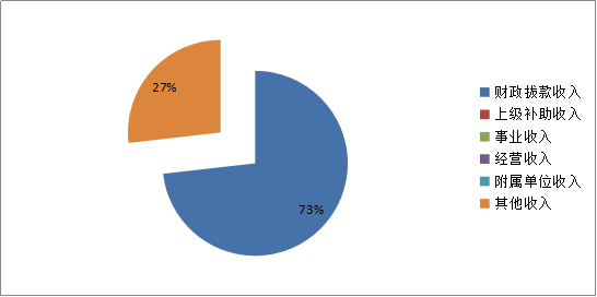 2017年度本年收入合计7,149万元。其中:财政拨款收入5,233万元,占本年收入73.20%;上级补助收入0万元,占本年收入0.00%;事业收入0万元,占本年收入0.00%;经营收入0万元,占本年收入0.00%;附属单位上缴收入0万元,占本年收入0.00%;其他收入1,916万元,占本年收入26.80%。