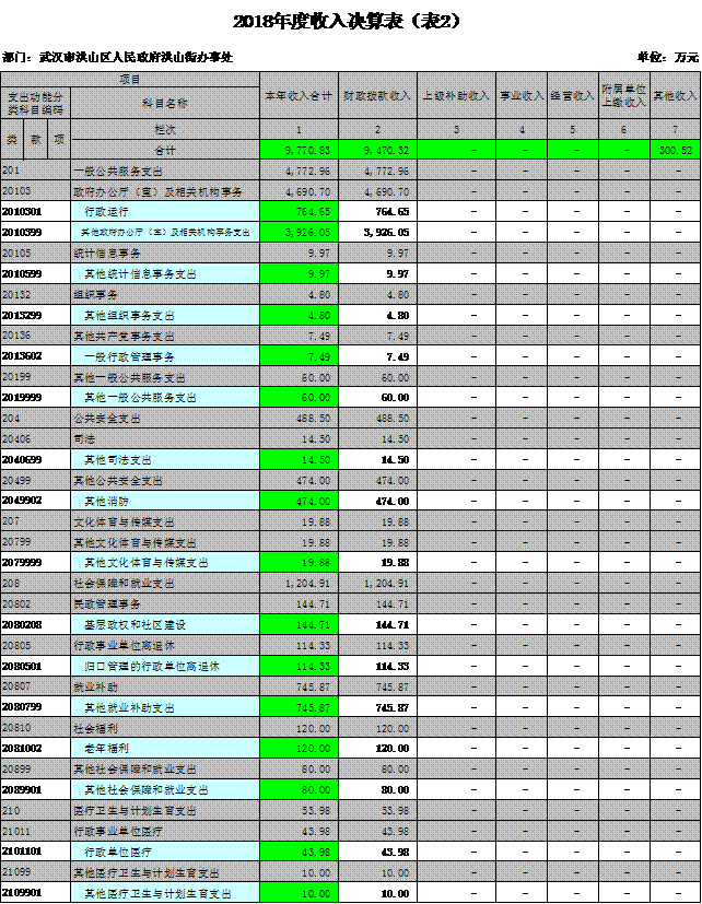 第二部分 黄色网址 洪山街办事处2018年度部门决算表