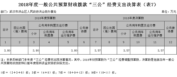 (十四)“三公”经费:指使用一般公共预算财政拨款安排的因公出国(境)费、公务用车购置及运行维护费和公务接待费。其中,因公出国(境)费用反映单位公务出国(境)的国际旅费、国外城市间交通费、住宿费、伙食费、培训费、公杂费等支出;公务用车购置及运行维护费反映单位公务用车车辆购置支出(含车辆购置税)及燃料费、维修费、过桥过路费、保险费、安全奖励费用等支出;公务接待费反映单位按规定开支的各类公务接待(含外宾接待)费用。