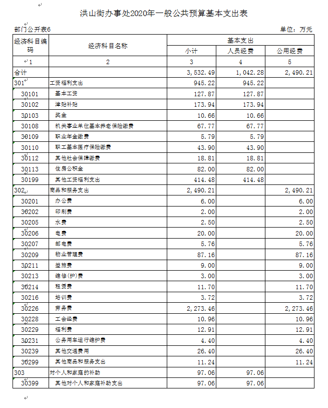 六、一般公共预算基本支出表