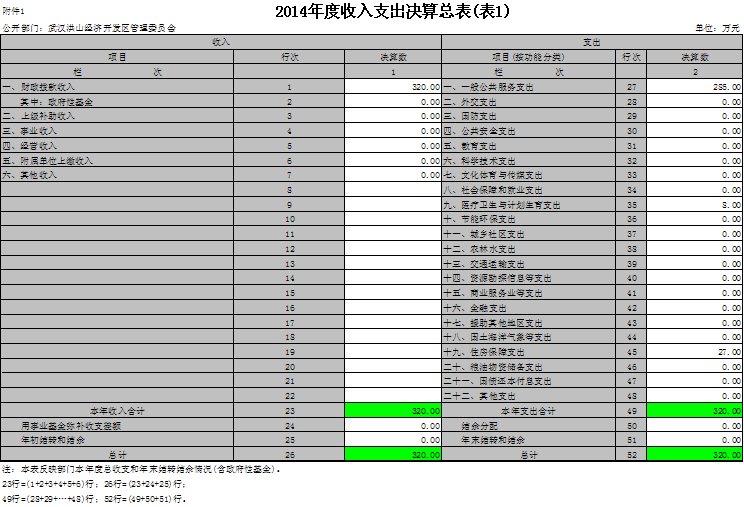 武汉洪山经济开发区管理委员会2014年度收入总计320万元,支出总计320万元。与2013年相比,收入增15%,主要原因是人员经费增加 。支出增15%。主要原因是 人员经费增加 。