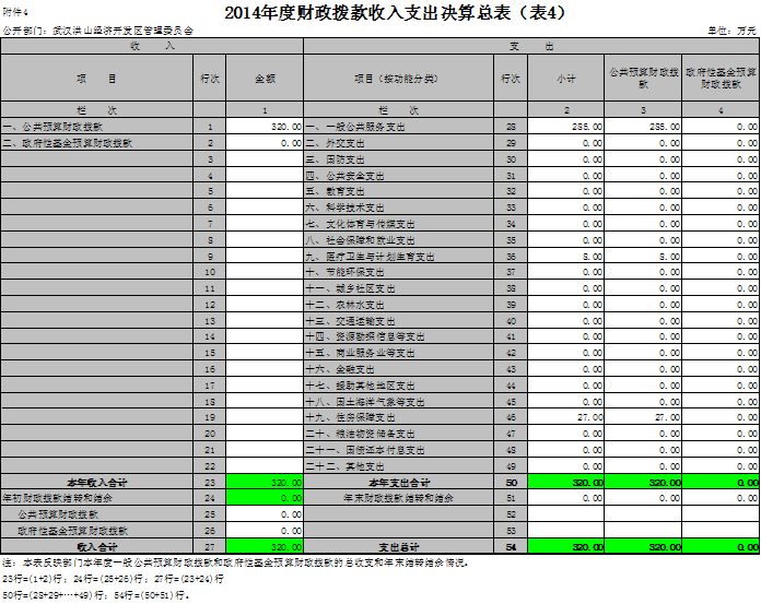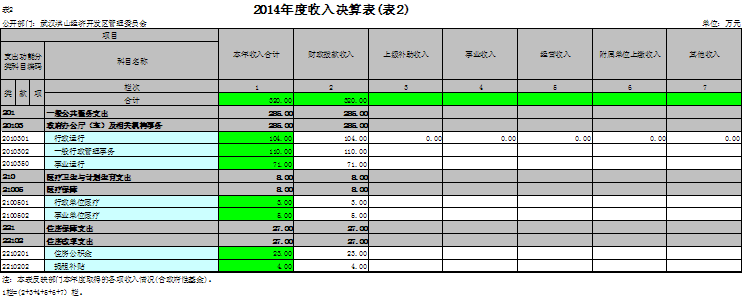 武汉洪山经济开发区管理委员会2014年度本年收入合计320万元。其中:财政拨款收入(含政府性基金拨款) 320万元,占本年收入100%。