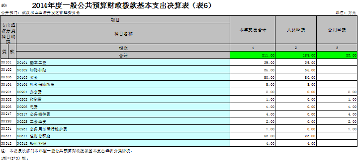 六、2014年度一般公共预算财政拨款基本支出决算表(表6)
