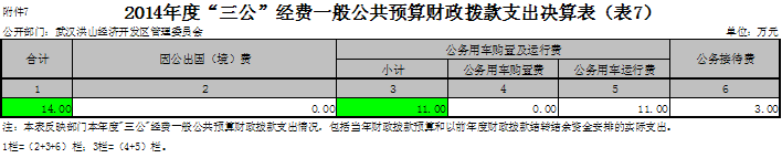 七、2014年度一般公共预算财政拨款“三公”经费支出决算表(表7)