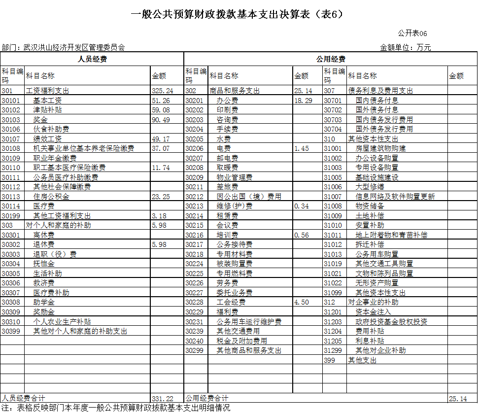 六、一般公共预算财政拨款基本支出决算表(表6)