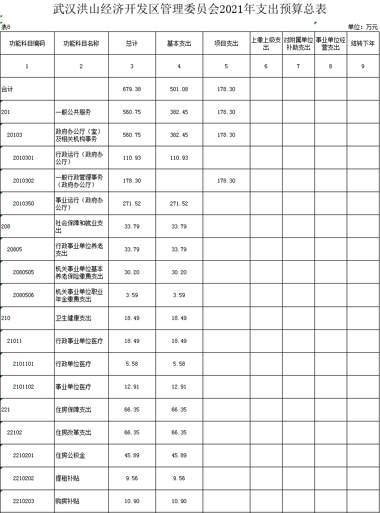 名 称:武汉洪山经济开发区管理委员会2021年支出预算总表